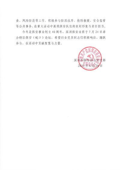 深圳保安協會黨支部發布關于七一建黨節倡議書!