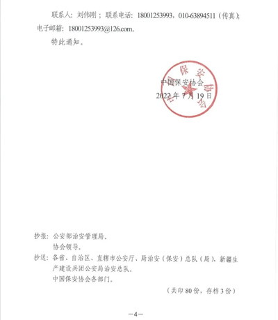 中國保安協(xié)會發(fā)布《關(guān)于組織做好保安行業(yè)主題日宣傳活動的通知》(中保協(xié)【2022】13號),通知指出,公安部治安管理局決定在7月24日組織開展以“喜迎二十大、保安護(hù)平安”為主題的全國保安行業(yè)主題日宣傳活動。