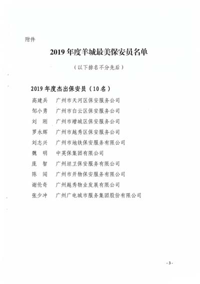 廣州市見(jiàn)義勇為基金會(huì)關(guān)于表彰2019年度羊城最美保安員的決定